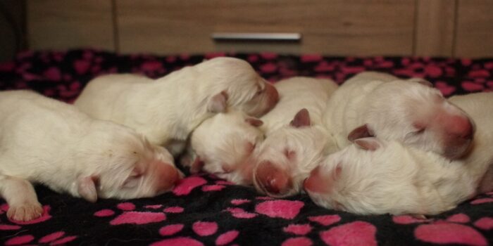Heute ist ein besonderer Tag, denn am 19. März 2026 hat unser P-Wurf das Licht der Welt erblickt. Insgesamt durften wir 6 gesunde und kräftige Welpen begrüßen. Die letzten drei Welpen wurden per Kaiserschnitt geboren.